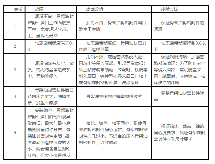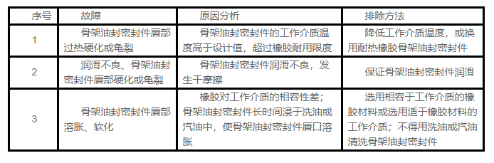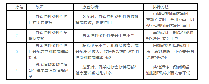 在有效使用期限內(nèi),微量的泄漏是允許的,否則,必須按照下述骨架油封密封件的常見故障原因及排除方法進(jìn)行處理。