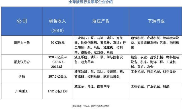 德、美、日制造業(yè)底蘊深厚,擁有全球液壓巨頭企業(yè),德國、美國、日本的液壓產(chǎn)業(yè)在全球保持領先,擁有液壓行業(yè)最優(yōu)質企業(yè)。總體而言,液壓產(chǎn)業(yè)的發(fā)展離不開龐大的本土市場需求和企業(yè)強大的技術研發(fā)實力與工藝積淀,德、美、日作為傳統(tǒng)的制造業(yè)強國,強大的制造業(yè)底蘊成就了一批液壓行業(yè)的百年老店,全球液壓元件行業(yè)公認的百年老店包括:博世力士樂(Rexroth)、派克漢尼汾(Parker Hannifin)、伊頓(Eaton)、川崎重工等。