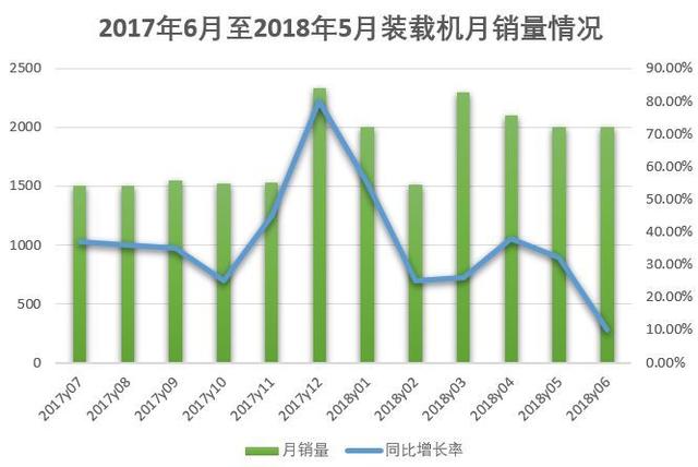 圖注:2017年6月至2018年5月裝載機(jī)月銷(xiāo)量情況