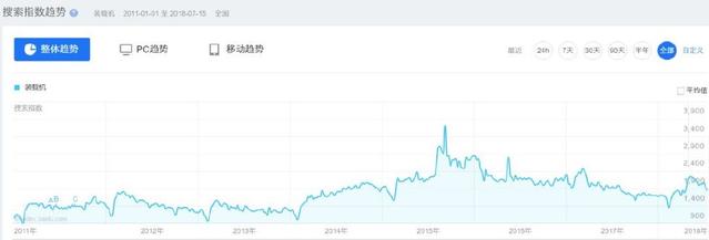 以裝載機(jī)作為關(guān)鍵詞進(jìn)行百度指數(shù)搜索,可以看出從2011年至今,用戶(hù)對(duì)裝載機(jī)的關(guān)注度在逐漸提升,并且用戶(hù)移動(dòng)化的趨勢(shì)逐漸明顯。