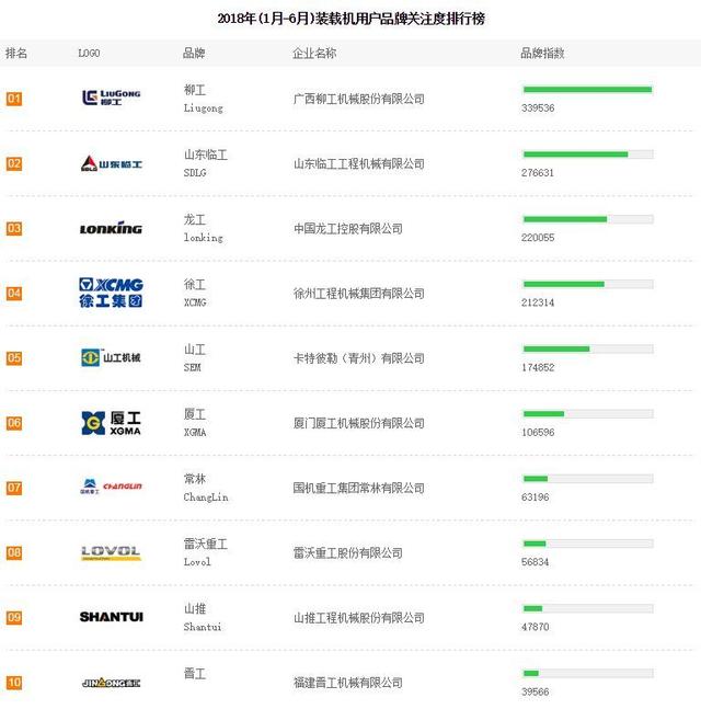 通過(guò)上半年裝載機(jī)用戶(hù)對(duì)品牌的關(guān)注排名榜看,以柳工、臨工、龍工三大工第一梯隊(duì)的鐵三角陣營(yíng)沒(méi)有發(fā)生改變,依然占據(jù)裝載機(jī)品牌關(guān)注榜前三,通過(guò)用戶(hù)關(guān)注度也在一定程度上反映出品牌的銷(xiāo)售情況。(如下品牌關(guān)注度僅供參考)